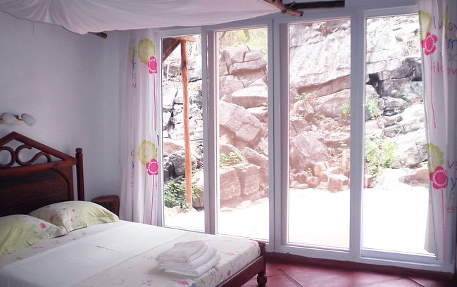 Die Lodge ist von einer einzigartigen Landschaft umgeben und bietet 8 Bungalows und 3 Zimmer plus einer Familienunterkunft an, alle mit eigenem Bad, Terrasse und Klimaanlage (nur am Abend, wenn der Generator eingeschaltet wird, ansonsten 24/24h Strom mit Wind- und Solarenergie).