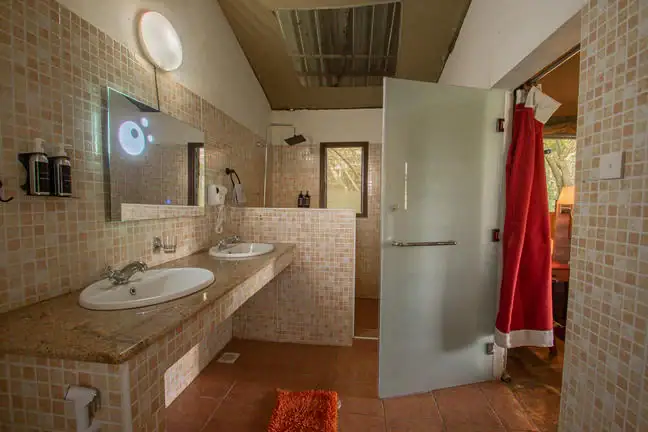 Alle unsere Zelte verfügen über ein eigenes Bad und eine Veranda, sodass Sie den Luxus von zu Hause im „Safari-Stil“ genießen können. Das Warmwasser wird über einem Holzfeuer erhitzt, das mit Ihrem Badezimmer verbunden ist, damit Sie ein Bad genießen können.