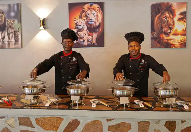 Alle Mahlzeiten werden speziell für Sie handgefertigt, hausgemacht und frisch zubereitet und als festes Menü serviert. Getränke sind an unserer Bar gegen Barzahlung erhältlich, um das Safari-Erlebnis abzurunden.