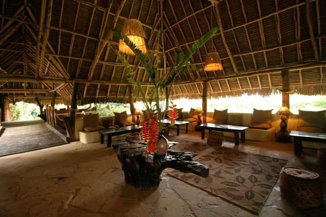 Die strohgedeckten Zelte des Camps sind mit Himmelbetten, eigenem Bad mit Spültoilette und Regendusche ausgestattet und bieten zudem einen täglichen Reinigungsservice sowie Arbeitsbereiche.