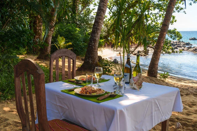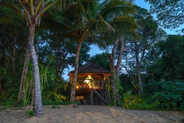 Die Lodge liegt eingebettet in einer geschützten Bucht, umgeben vom Masoala-Nationalpark, und öffnet sich zum warmen, korallenreichen Wasser des Tampolo-Meeresschutzgebiets. Hier erstrecken sich kilometerlange Strände, und die Geräusche eines Waldes voller Leben versetzen Sie jeden Abend in eine glückselige Träumerei.
